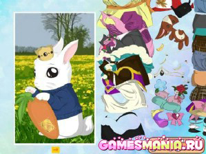 На цветочной полянке обитает маленькое белое, пушистое существо. Это сказочный кролик. Он прибыл из сказки и его можно одевать в разную нарядную одежду. Например кролика можно сделать королевой, одев ему платье и корону. Или отправить его на бал, выбрав пышное платье и розы. А можно примерить смешные штанишки и кепку, дать в лапки плюшевого мишку, и кролик станет симпатичным  малышком. Он настолько хорошенький и мылый, что все наряды ему подойдут. Позовите на помощь Вашу фантазию и воображение и сказочный кролик станет для Вас настоящим другом. Игра управляется мышкой, путем перетаскивания предметов одежды на кролика.