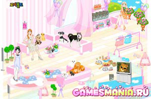 Посоветуйте трем подружкам, как правильно и функционально можно расставить данные вещи. Необходимо соблюсти три основных правила. Первое – это комфорт, второе – полезность или функционал, и третье – эстетика или попросту красота. Все предметы передвигаются посредством мышки и ставятся в любую точку комнаты. Начнем с расстановки мягкой мебели: диванов, кресел, лежанок. Разграничим пространство с помощью прозрачных перегородок. Постелем ковры, прибьем навесные полки. Они пригодятся для хранения на них собачьих кормов, шампуней. Расставим столы, завесим шторки. Украсим комнату воздушными шариками и цветами.